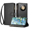 Honor Magic8 Lite 5G -älypuhelimelle rikkoutumiselta suojaava, käytännöllinen ja aina edustavan mustan värinen lompakkokotelo.