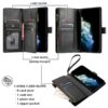 Koko lompakko kiinnittyy magneettisella läpällä ja rannehihna tuo tuen kannatteluun, kotelo kulkee siis turvallisesti matkassa ympäröiden puhelimen ja maksuvälineet.