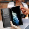 Maksuvälineet, kuitit ja henkilökortit kulkevat kotelossa saatavilla kolmessa korttipaikassa ja leveässä setelitaskussa.