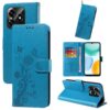 Perhosia ja kukkia painettuina petrolinsävyiseen siniseen koteloon, jolla suojaat Honor X5c Plus -älypuhelimen kauttaaltaan.