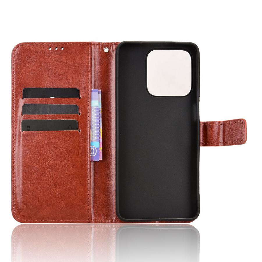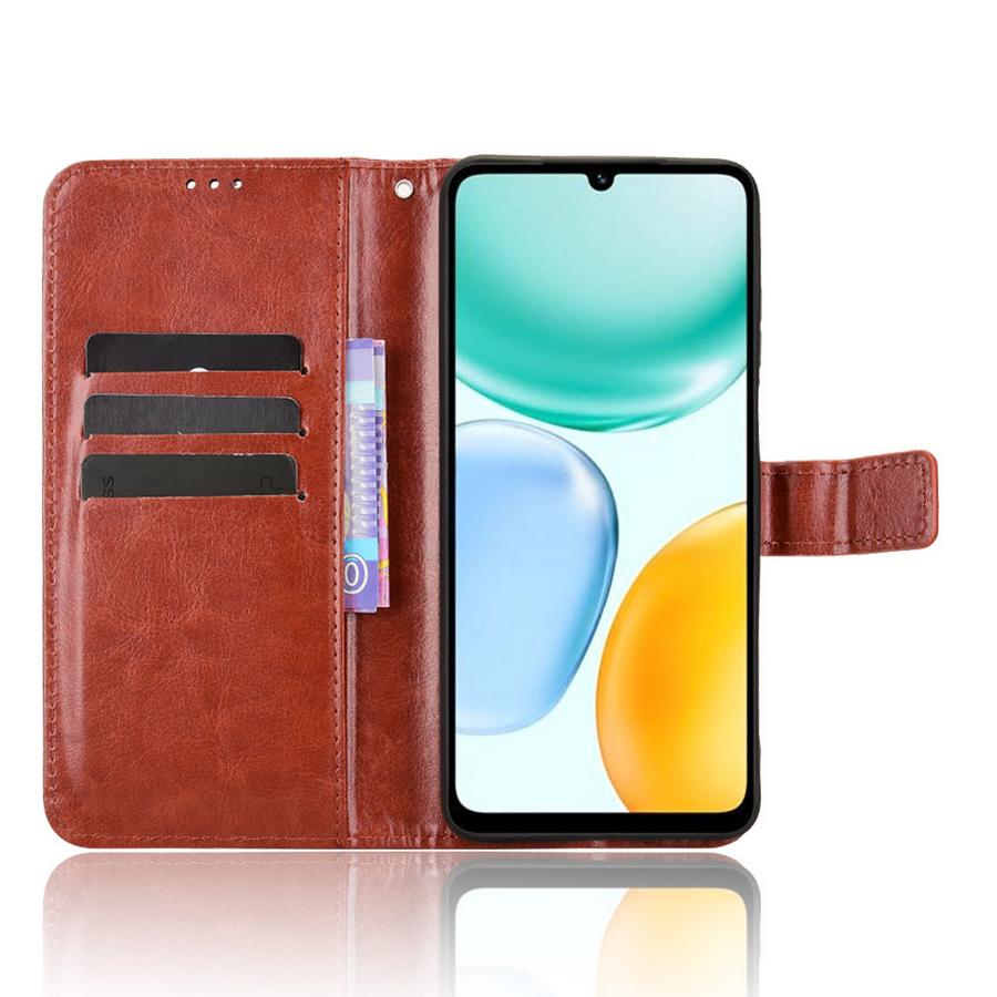 Lämpimän ruskean sävyisessä lompakkokotelossa Honor X5c Plus -älypuhelin saa erinomaisen suojauksen osumilta ja putoamisilta.