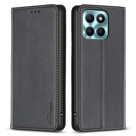 Mustakantinen, upeaan hillittyyn tyyliin pelkistetty suojakotelo Honor X6a -älypuhelimelle on kattava turva osumilta ja naarmuilta.