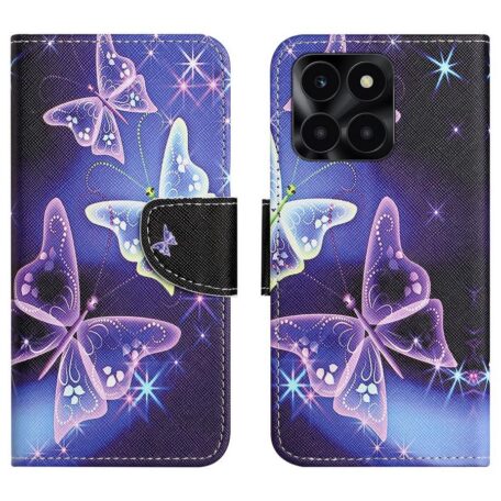 Kuultavasiipisten perhosten lentokuvioita tähtitaivasta vasten, ihastuttava tummapintainen lompakkokotelo Honor X6a puhelinmallille.