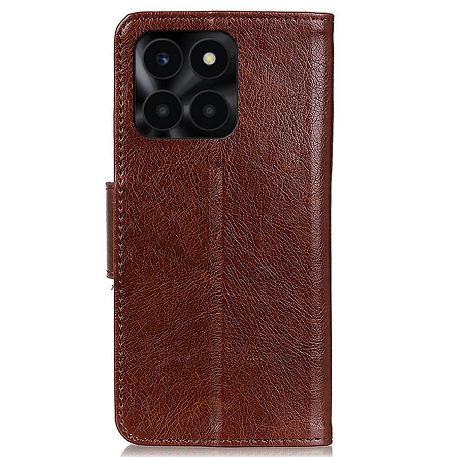 Hyvännäköinen lämpöisen ruskean sävyinen lompakkokotelo, jolla saat suojattua Honor X6a puhelinmallin osumilta ja naarmuilta.