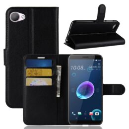Pidä kortit, kuitit ja setelit mukana ja suojaa HTC Desire 12 älypuhelin mustalla lompakko mallisella suojakotelolla.