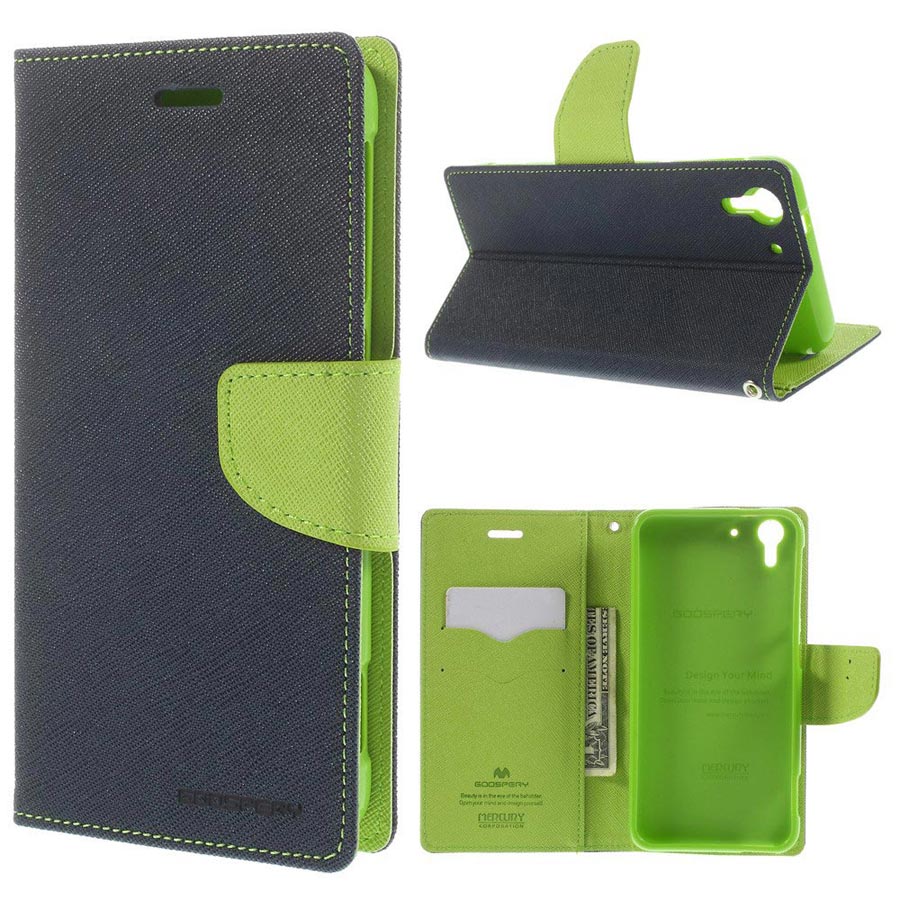 Tilaa upea kaksivärinen sininen/vihreä Goospery Fancy lompakkokotelo suojaamaan HTC Desire Eye älypuhelinta.