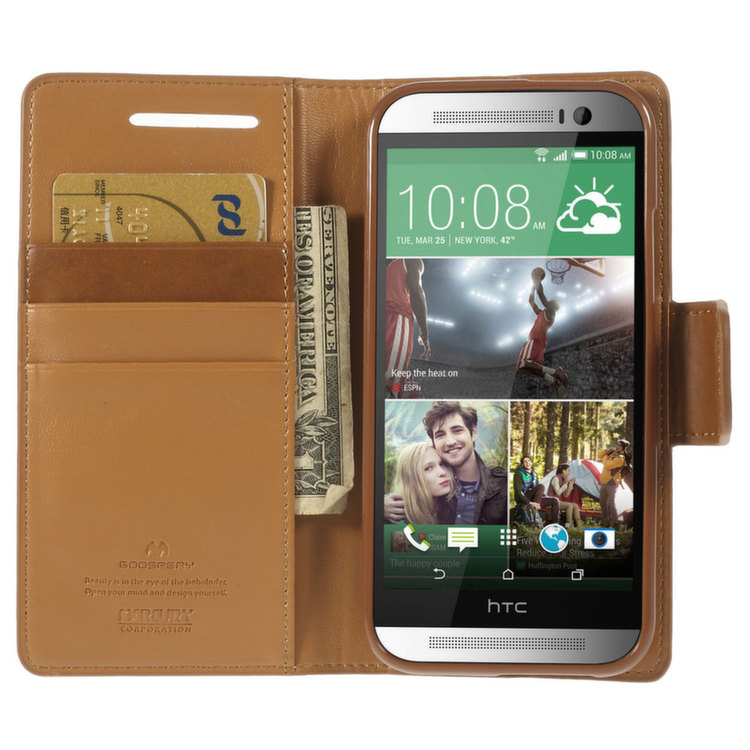 Tyylikäs ja korkealaatuinen ruskea Goospery Sonata lompakko suojakuori HTC One M8 älypuhelimeen.