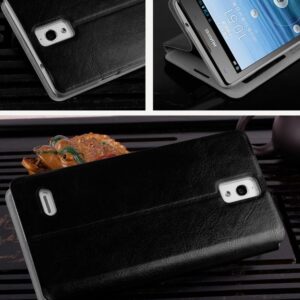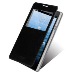 Tyylikäs musta ikkunallinen MOFI suojakuori Huawei Ascend G700 puhelimeen.