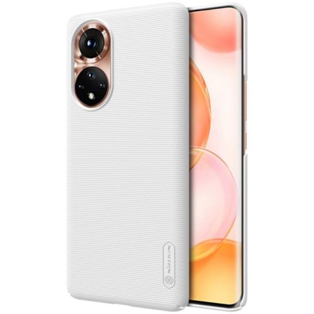 Upean raikas, puhtaanvalkoinen Nillkin Super Frosted -takakuori Huawei Honor 50 -puhelimen lujaksi suojaksi rikkoutumiselta.