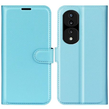 Kauniin vaaleansininen, lompakkomallinen suojakotelo estämään säröt ja naarmut Huawei Honor 70 puhelimessa.