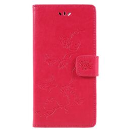 Suojaa Huawei Honor 7A älypuhelin iskuilta, kolhuilta ja putoamisilta tyylikkäällä pinkillä lompakkokotelolla, jossa on perhosia ja kukkia.