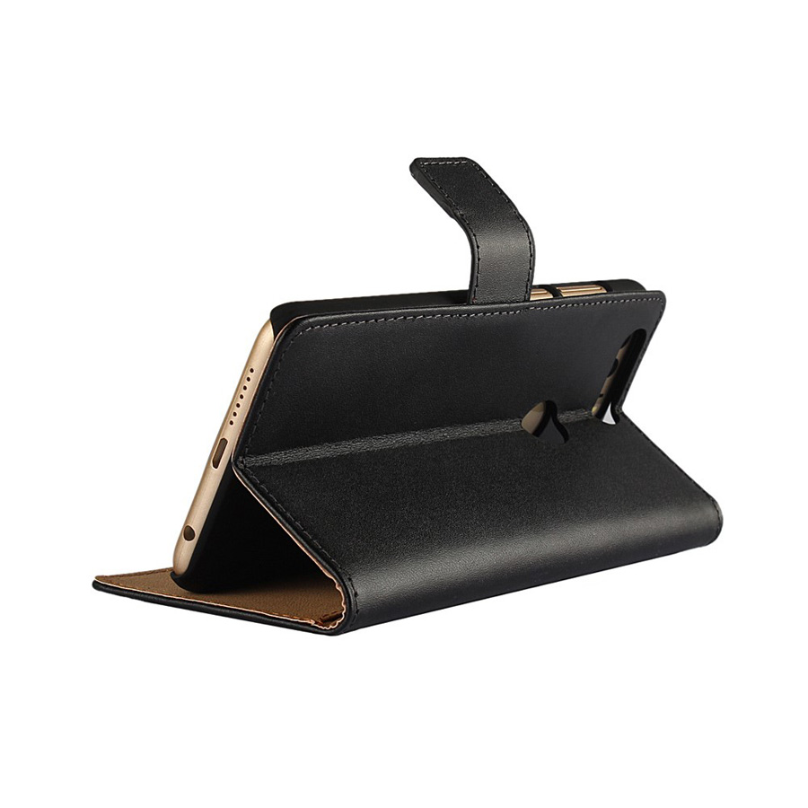 Mustalla lompakko mallisella nahkakotelolla suojaat Huawei Honor 8 älypuhelimen tyylillä.