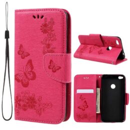 Suojaa Huawei Honor 8 Lite älypuhelin tyylillä pinkillä perhonen lompakko suojakotelolla.