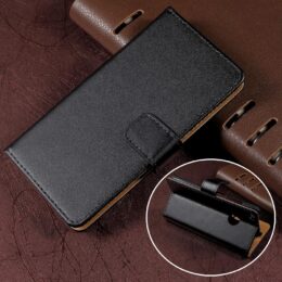 Suojaa Huawei Honor 8 Lite älypuhelin kolhuilta ja naarmuilta mustalla nahkakotelolla.
