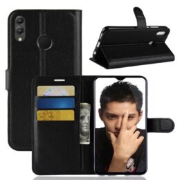 Tilaa edullinen ja kätevä musta lompakko suojakotelo suojaamaan Huawei Honor 8X älypuhelinta naarmuilta, putoamisilta ja iskuilta.