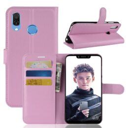 Vaaleanpunaisella lompakko mallisella suojakotelolla suojaat Huawei Honor Play älypuhelimen iskuilta, naarmuilta ja putoamisilta.