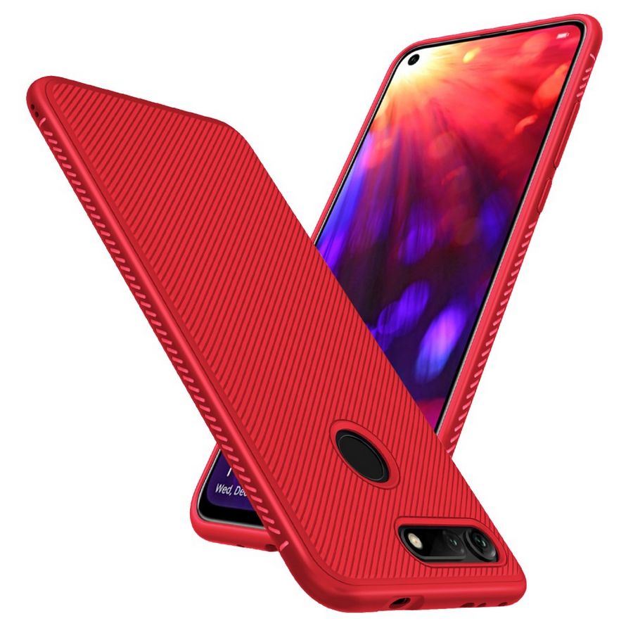 Suojaa Huawei Honor View 20 älypuhelin iskuilta ja naarmuilta punaisella taipuisasta ja murtumattomasta silikonista valmistetulla suojakuorella.