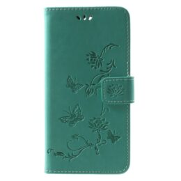 Puhelimenkuoret.fi verkkokaupasta tilaat tyylikkään turkoosin värisen lompakkokotelon, jossa on perhosia ja kukkia, Huawei Mate Lite puhelimelle.