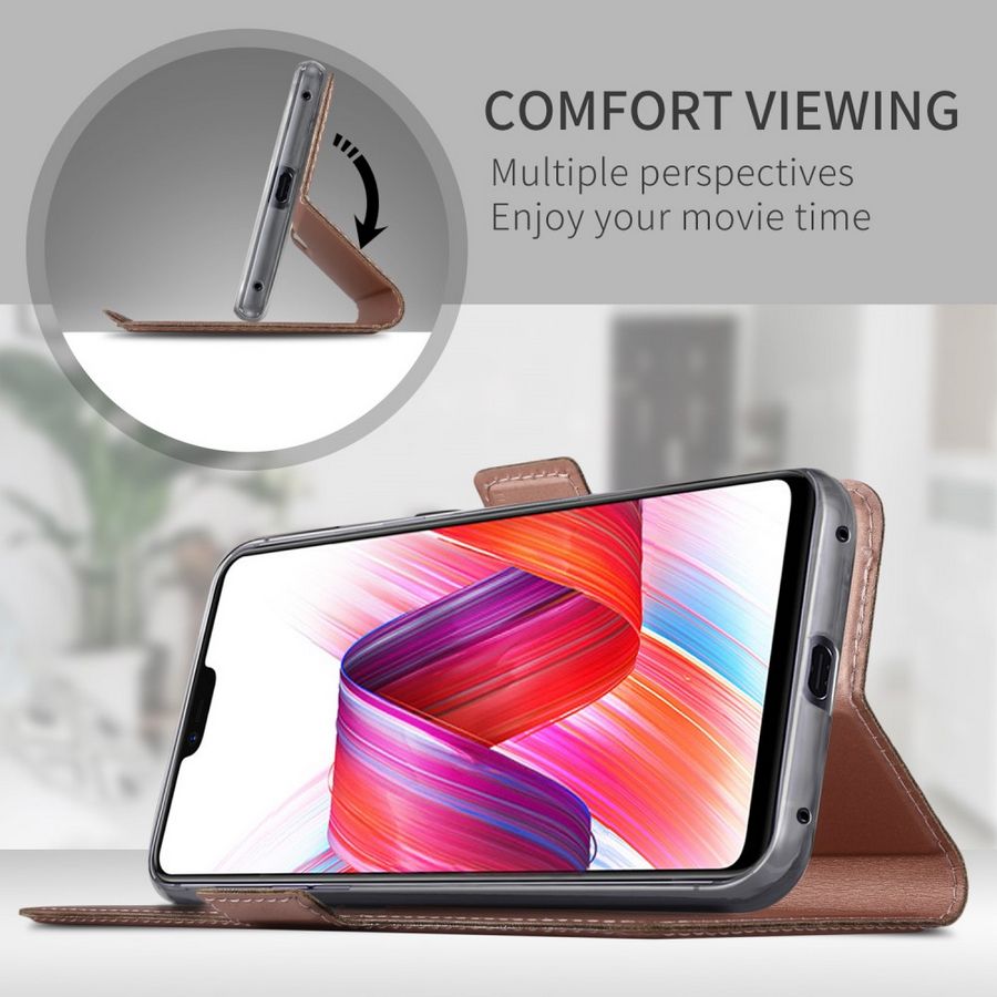Tilaa erittäin tyylikäs ja laadukas älytoimintoja tukeva tummanruskea Qialino nahkakotelo suojaamaan Huawei Mate 20 Pro älypuhelinta.