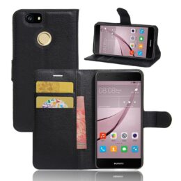Suojaa Huawei Nova älypuhelin iskuilta ja naarmuilta tyylillä käyttäen mustaa lompakko suojakoteloa.