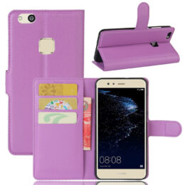 Puhelimenkuoret.fi verkkokaupasta tilaat edullisesti violetin lompakkokotelon suojaamaan Huawei P10 Lite älypuhelinta.