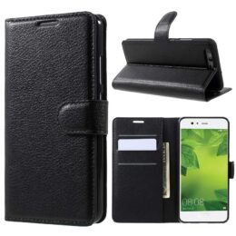 Musta lompakko mallinen suojakotelo auttaa suojaamaan Huawei P10 puhelintasi kolhuilta, naarmuilta ja putoamisilta.