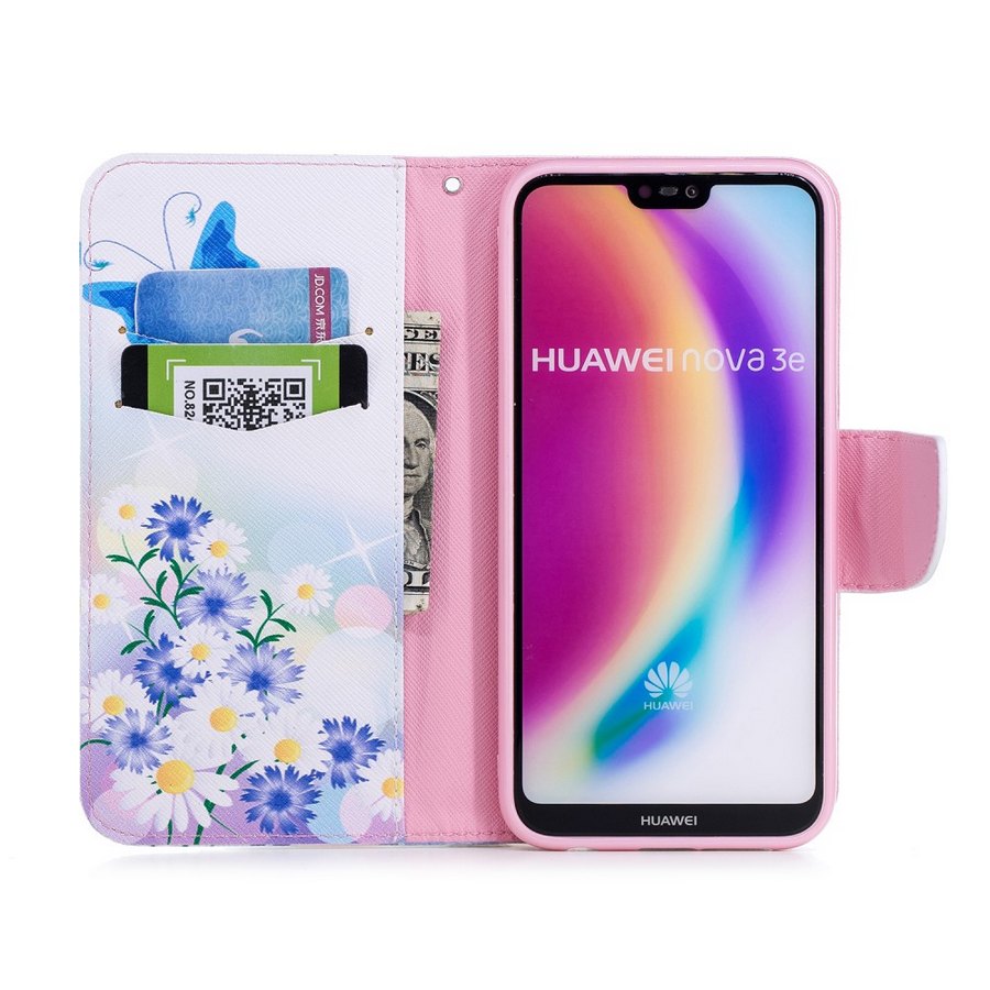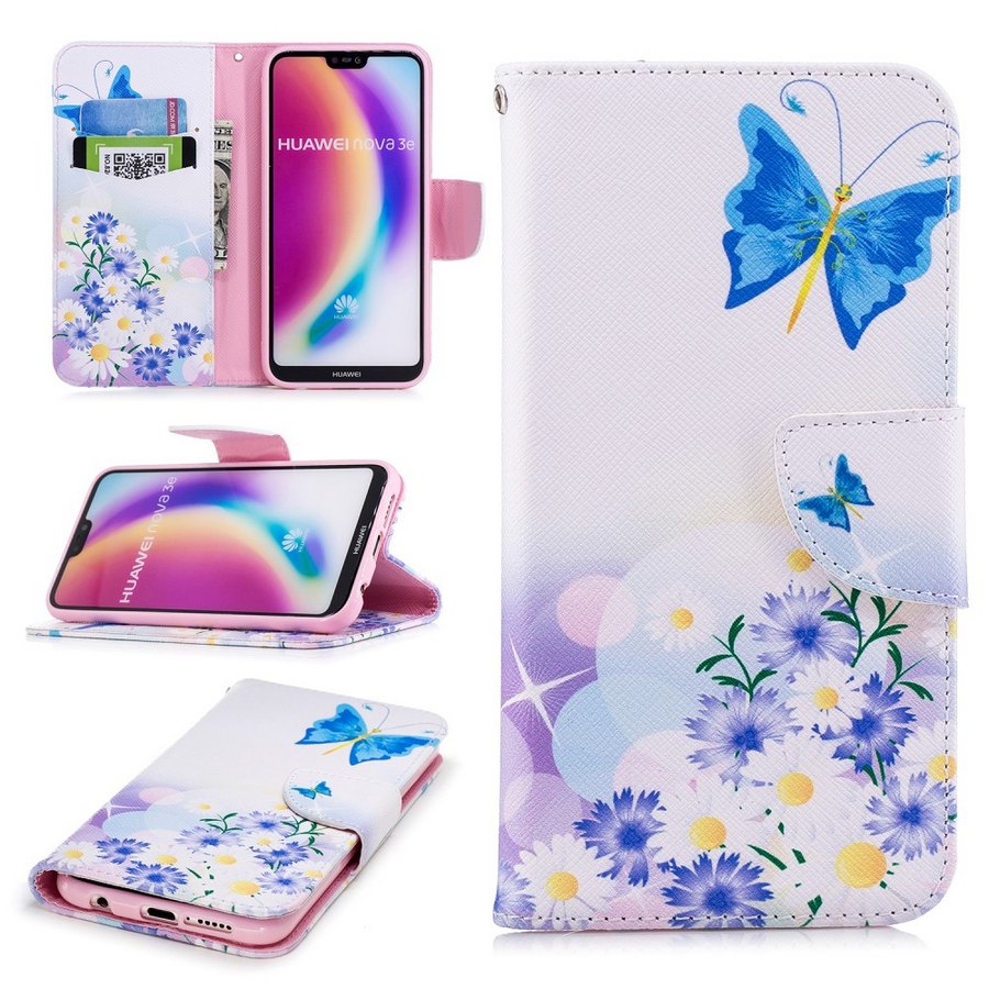 Tyylikäs perhoskuvioinen perhonen 3 lompakkokotelo auttaa suojaamaan Huawei P20 Lite älypuhelintasi kolhuilta, putoamisilta ja naarmuilta.