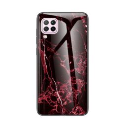 Räväkän punainen marmorikuviointi tummaa taustaa vasten antaa takakuorelle loisteliaan ulkoasun, suojaten tehokkaasti Huawei P40 Lite puhelinta.