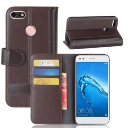 Tilaa tyylikäs ja laadukas aidosta nahasta valmistettu tummanruskea lompakkokotelo suojaamaan Huawei P9 Lite Mini puhelinta.