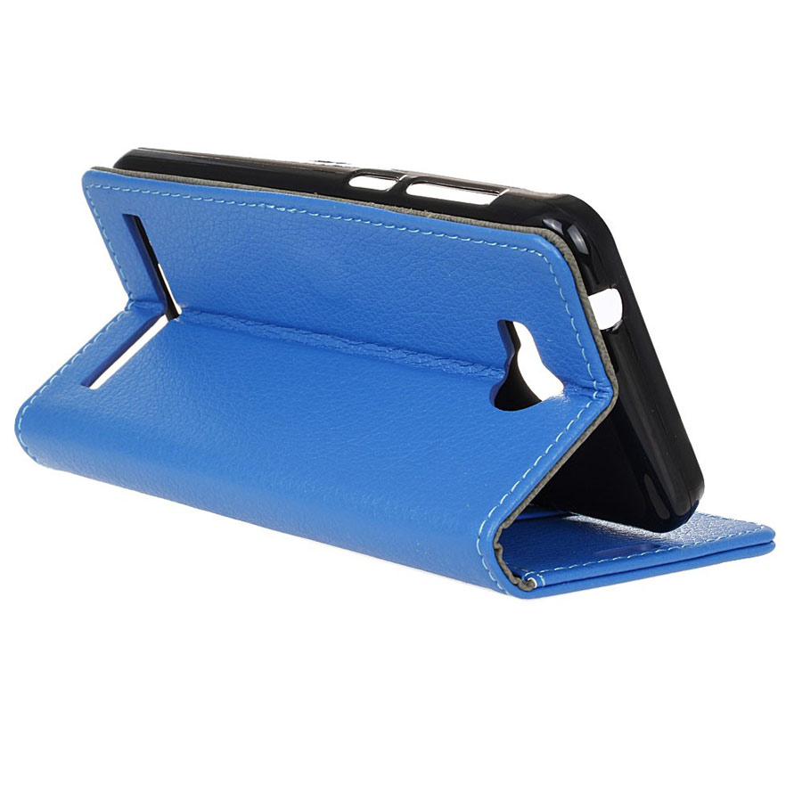 Sinisellä lompakko mallisella suojakotelolla suojaat Huawei Y3 II / Y3 2 älypuhelimen iskuilta, kolhuilta ja putoamisilta.
