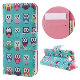Suojaa Huawei Y6 Pro puhelin lompakkokotelolla, jossa on paljon värikkäitä pöllöjä.