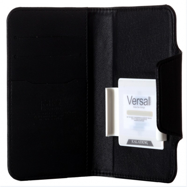 Laadukas musta KLD Versal yleismallinen läpällinen suojakotelo 4,3-4,8 tuumaisille puhelimille.