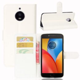 Valkoisella lompakko mallisella suojakotelolla suojaat Lenovo Moto E4 Plus / Motorola Moto E4 Plus älypuhelimen iskuilta ja kolhuilta tyylillä.