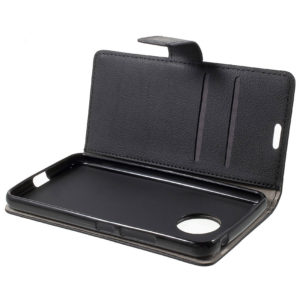Puhelimenkuoret.fi verkkokaupasta tilaat nopealla toimituksella mustan lompakko suojakotelon Lenovo Moto G5 älypuhelimeen.