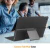 Hillitty harmaata ja mustaa värityksessä yhdistävä suojakotelo turvaamaan Lenovo Tab Plus tabletin käyttöä ja kuljettamista.