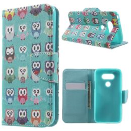 Tilaa sininen lompakkokotelo, jossa on paljon värikkäitä pöllöjä, suojaamaan LG G5 H850 älypuhelinta.