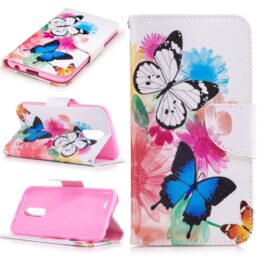Suojaa LG K10 (2017) älypuhelin iskuilta, naarmuilta ja putoamisilta perhonen 2 lompakko suojakotelolla.