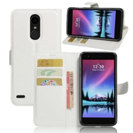 Tilaa valkoinen lompakkokotelo ja suojaat LG K10 (2017) puhelimen putoamisilta, kolhuilta ja naarmuilta.