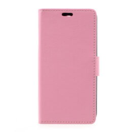 LG K4 (2017) älypuhelimeen sopivassa vaaleanpunaisessa lompakkokotelossa on kaksi korttipaikkaa, tasku, jalusta-toiminto ja magneettisuljenta.