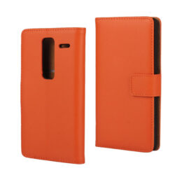 Tilaa oranssi nahkainen lompakkokotelo suojaamaan LG Zero H650 puhelinta iskuilta ja naarmuilta.