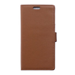 Suojaa Microsoft Lumia 950 älypuhelin ruskealla lompakko mallisella suojakotelolla.
