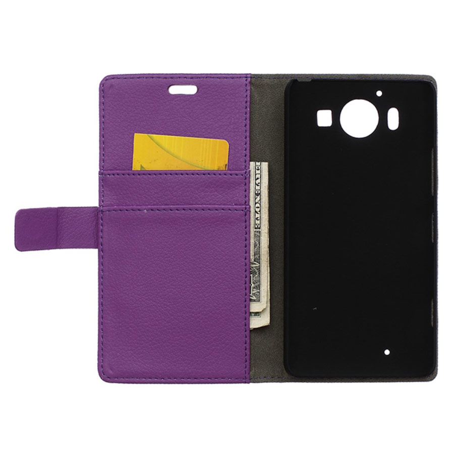 Tilaa violetti lompakkokotelo suojaamaan Microsoft Lumia 950 puhelinta naarmuilta, kolhuilta ja putoamisilta.