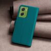 Vahingoittumiselta suojaava elegantisti tummasävyisen vihreä lompakkokotelo Motorola G06 -älypuhelimen turvaamiseen.