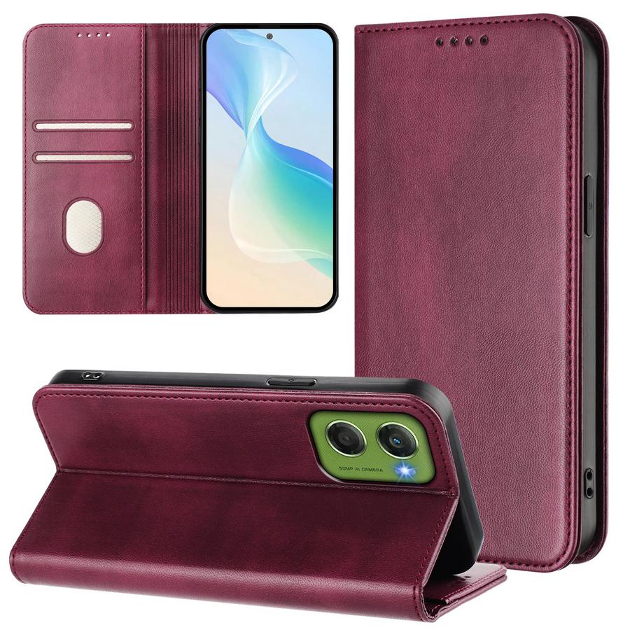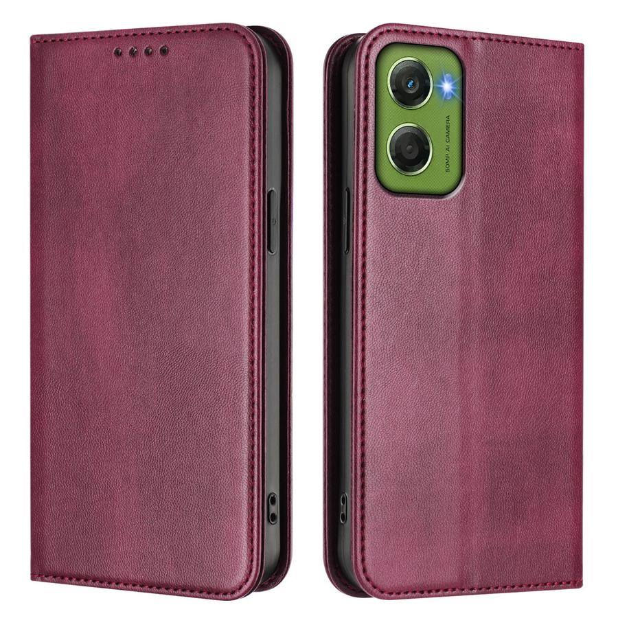 Motorola G06 puhelinta vaurioilta suojaava vahva ja pelkistetyn kaunis kotelomalli eleganttiin viininpunaiseen väriin puettuna.