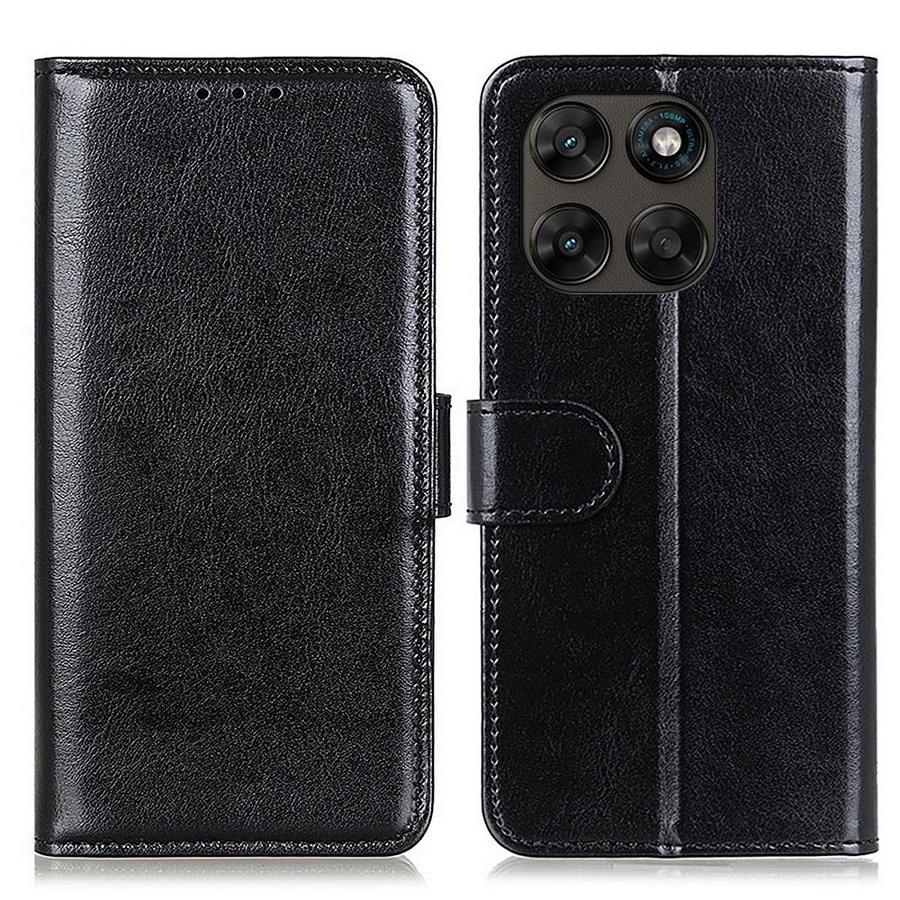 Vahingoittumiselta suojaava tyylikkään kiiltäväpintainen ja ajattoman musta lompakkokotelo Motorola G67 5G / G77 5G puhelimia varten.