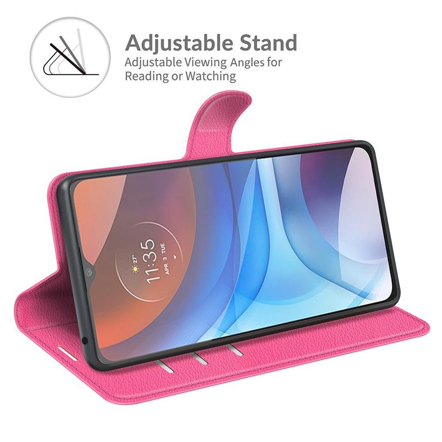 Ihana pinkki kotelo! Pirteä väritys ja mainiosti suojaava lompakkokotelo, jossa Motorola Moto E7i Power säilyy käyttökunnossa.