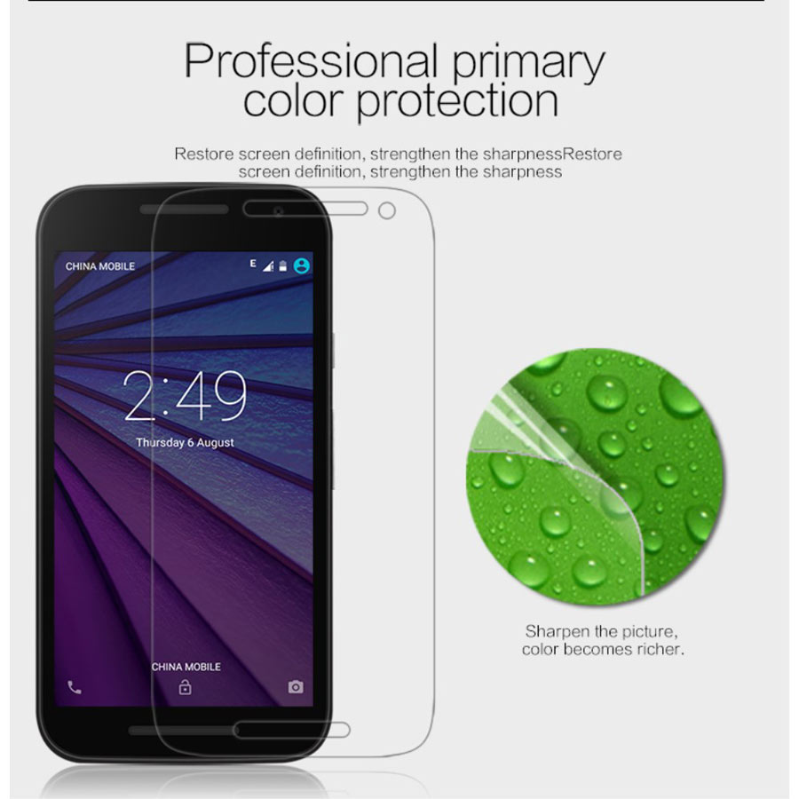 Suojaa Motorola Moto G 3rd Gen 2015 puhelimen näyttö kirkkaalla Nillkin näytön suojakalvolla.