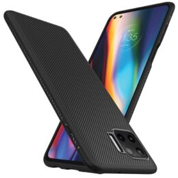 Motorola Moto G 5G Plus älypuhelimeen soveltuva musta takakuori, suojaa naarmuilta, säröiltä ja kolhuilta arjen käytössä.