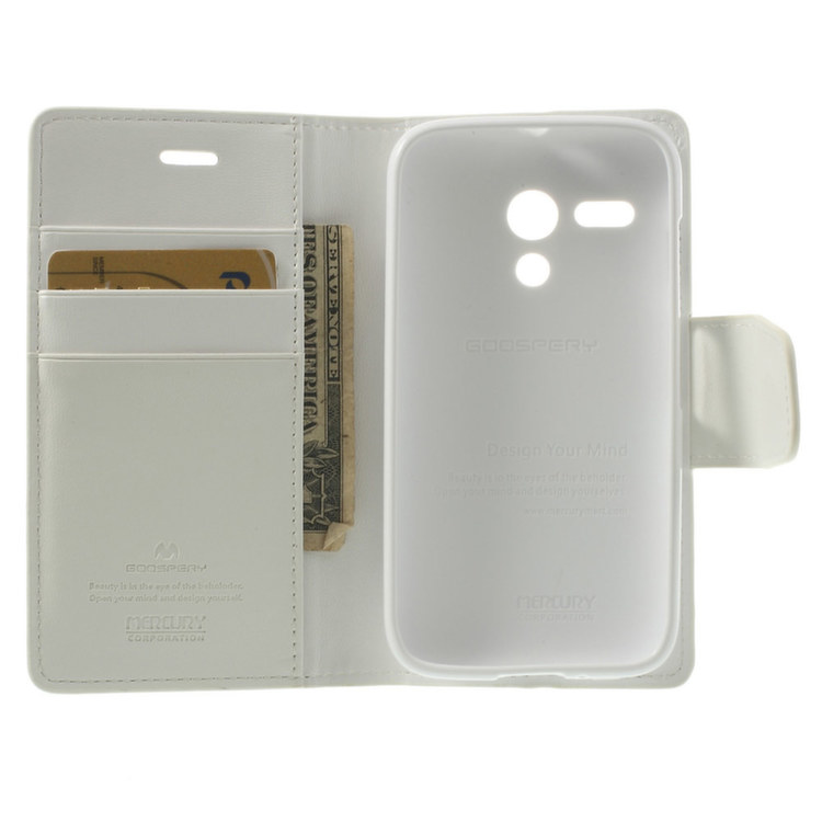 Tyylikäs ja laadukas valkoinen Sonata lompakko suojakuori Motorola Moto G puhelimeen.