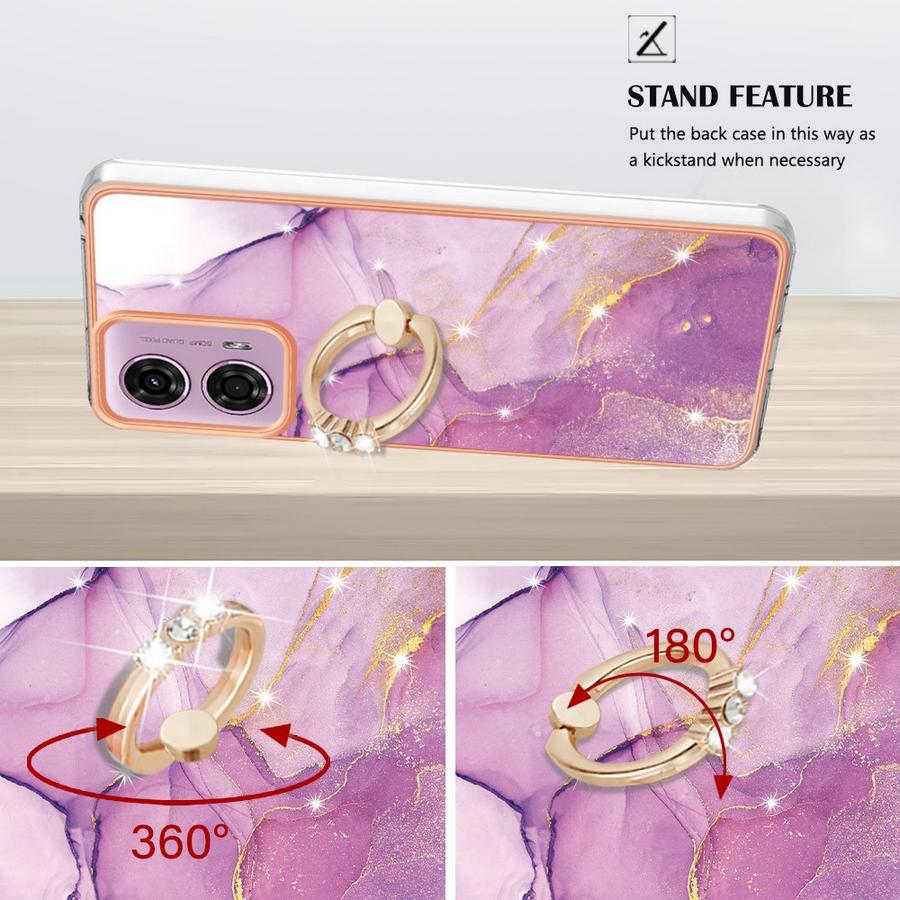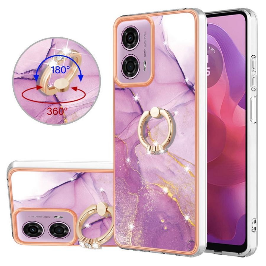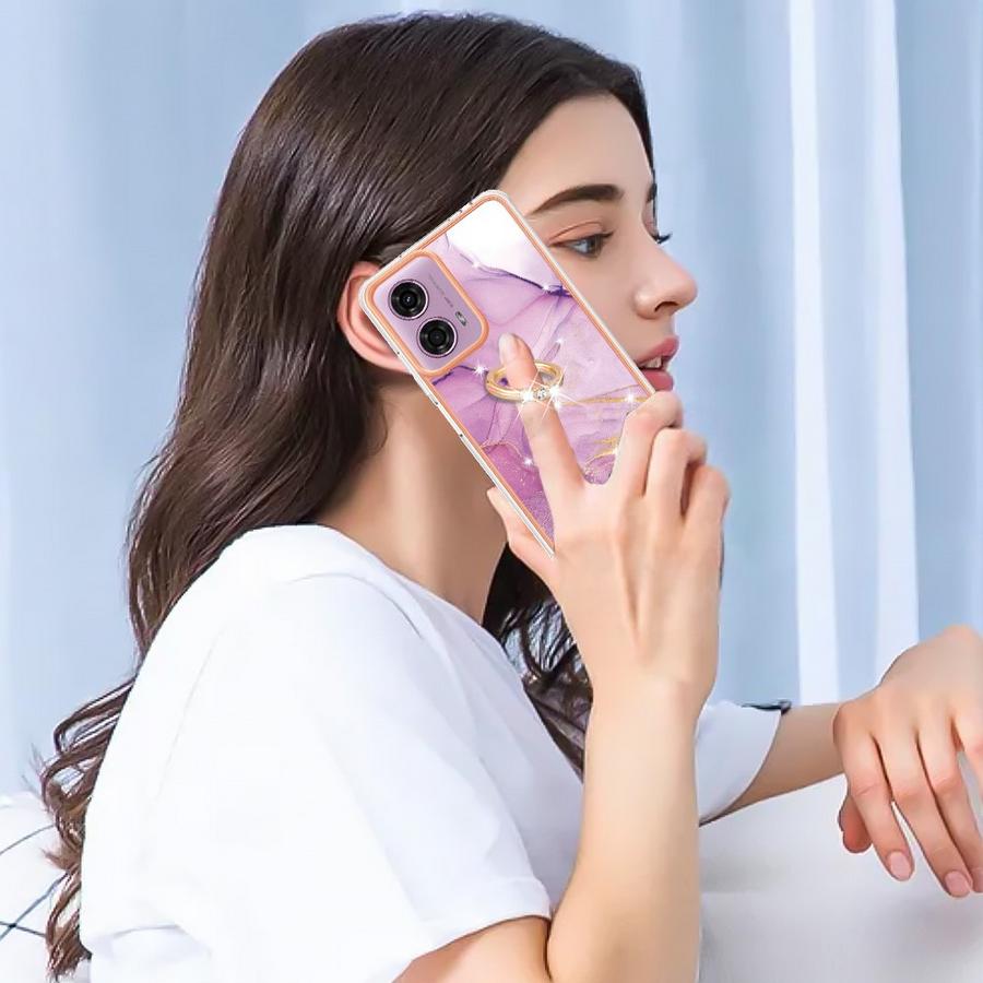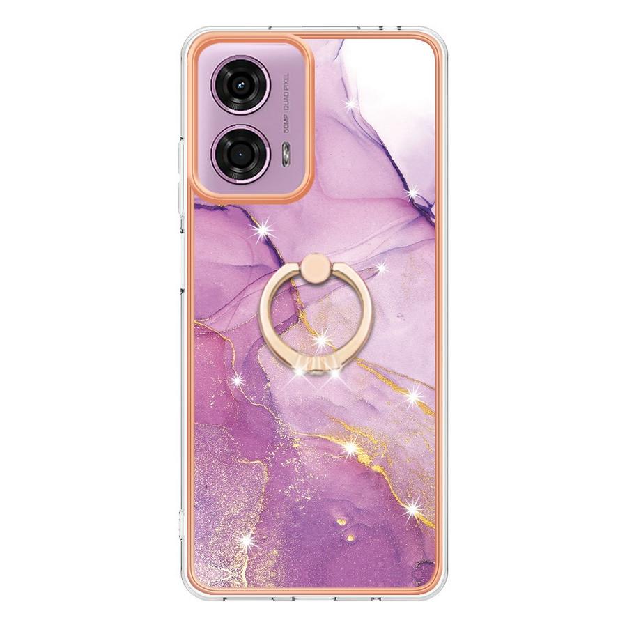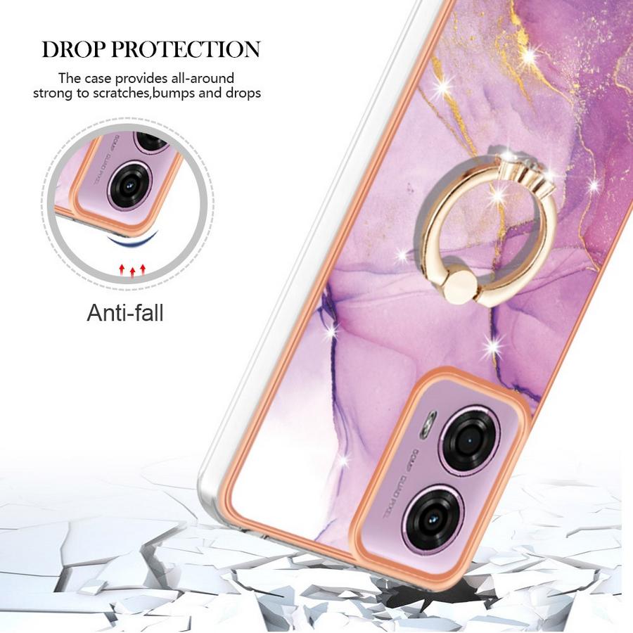 Vaurioiden syntymiseltä suojaava takakuori Motorola Moto G04 / G24 / G24 Power puhelimille, ihastuttavat violetit värisävyt marmorikuvioinnissa.